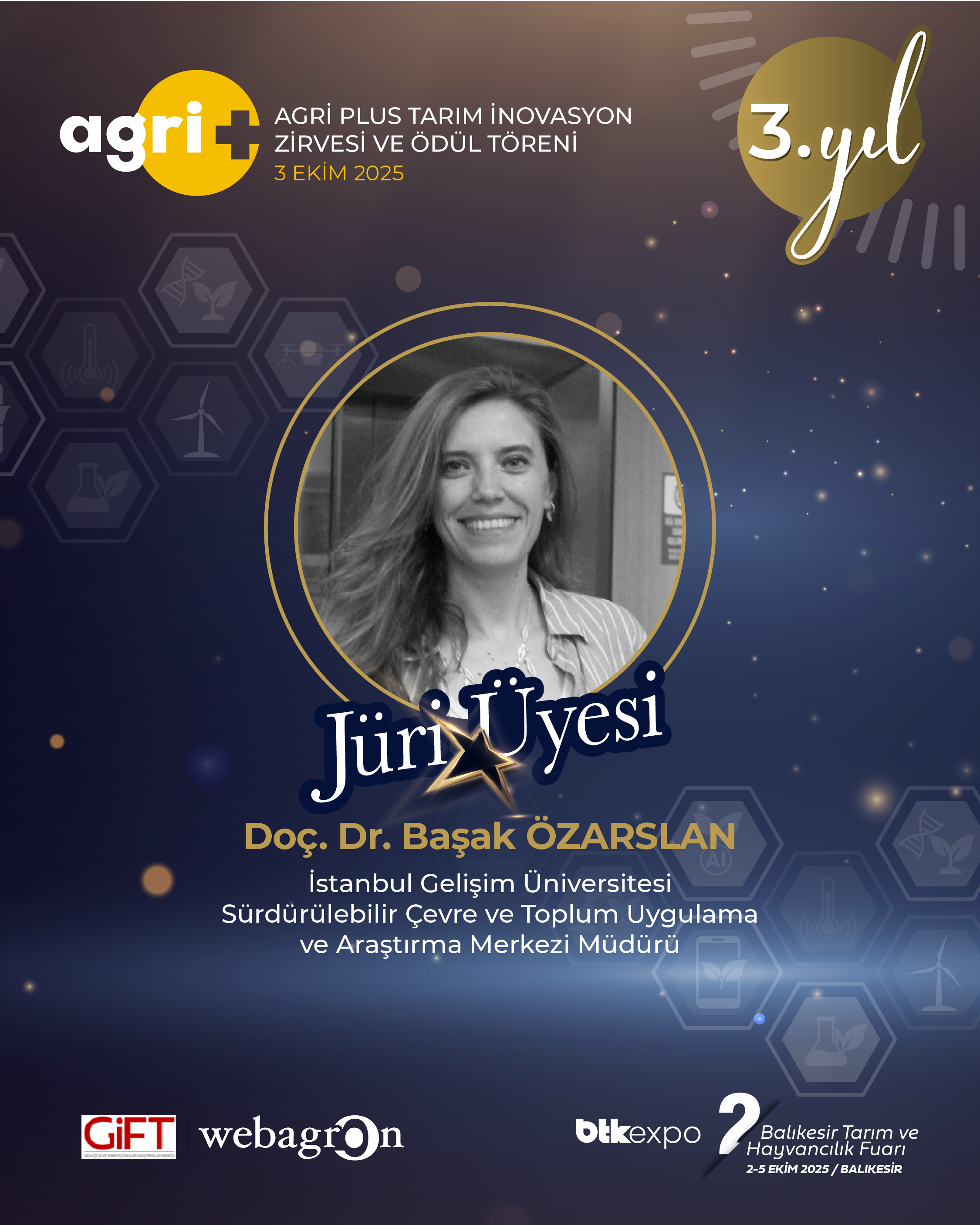 2025 yılında düzenlenen Agriplus Yenilikçi Tarım Ürünleri Ödülleri kapsamında, İstanbul Gelişim Üniversitesi Sürdürülebilir Çevre ve Toplum Uygulama ve Araştırma Merkezi Müdürü ve Uluslararası Ticaret ve İşletmecilik Bölümü Öğretim Üyesi Doç. Dr. Başak Özarslan Doğan, jüri üyesi olarak görev aldı.